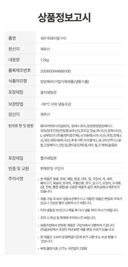 1. 제주 흑돼지 왕 양념구이 1.2kg+1.2kg